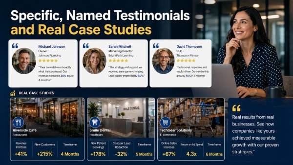 Signal 5, Specific, Named Testimonials and Real Case Studies